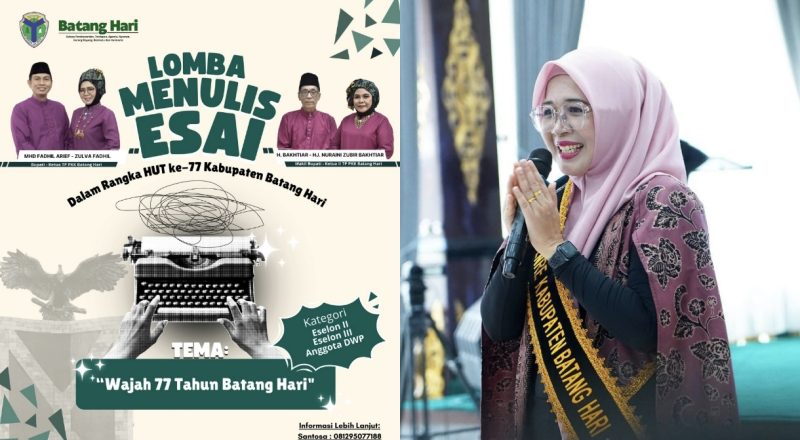 Menurutnya, HUT ke-77 merupakan waktu yang tepat untuk melakukan evaluasi, menghadirkan pemikiran, serta merumuskan harapan baru bagi Batang Hari. Karena itu, lomba esai menjadi sarana strategis untuk mendorong lahirnya pemikiran yang segar dan solutif dari internal birokrasi.