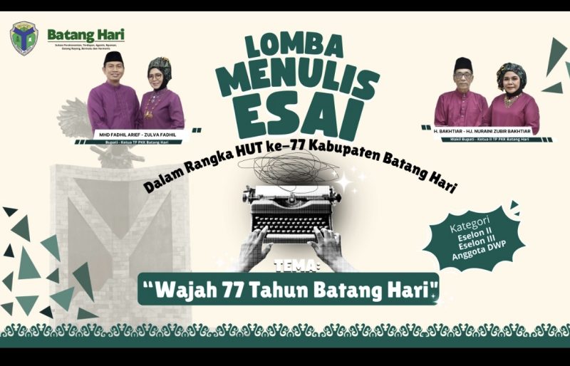 Lomba menulis esai tahun ini mengusung tema “Wajah 77 Tahun Kabupaten Batang Hari.” Tema tersebut mencerminkan semangat evaluasi, apresiasi, dan harapan terhadap perjalanan panjang pembangunan menuju Batang Hari Super Tangguh.
