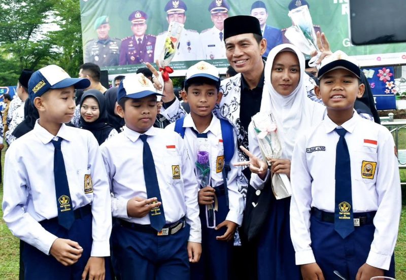 Setelah menerima bunga, Fadhil Arief sempat berbincang singkat dengan beberapa siswa. Percakapan ringan itu justru menghadirkan potret utuh tentang bagaimana pendidikan tumbuh, bukan hanya lewat kebijakan, tetapi lewat kedekatan, kepekaan, dan perhatian yang saling terhubung.